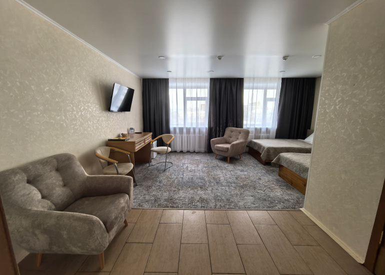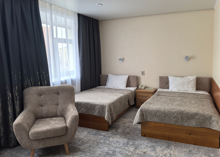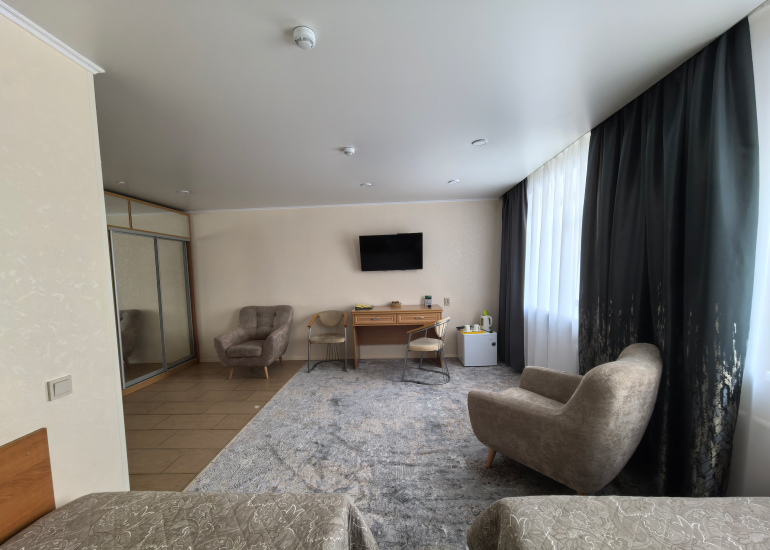 Single(12 номеров) - до 20 м² в номере есть все необходимое для комфортного проживания - кровать, кабельное телевидение, стол, тумбочка, холодильник и тд.