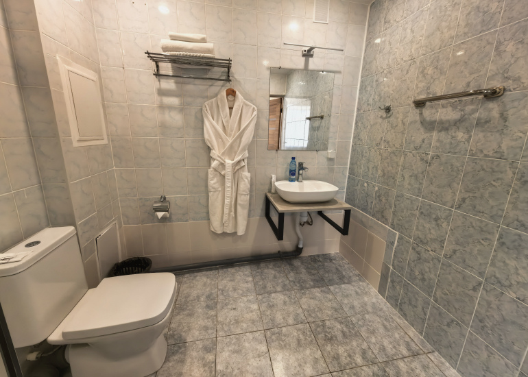 Deluxe(3 номера) - Просторные, светлые номера с гостиной, кабинетом, и спальней площадью до 65 м² оснащен всеми современными удобствами: большой комфортной кроватью, мягким уголком кабельным телевидением, сейфом, холодильником и тд.